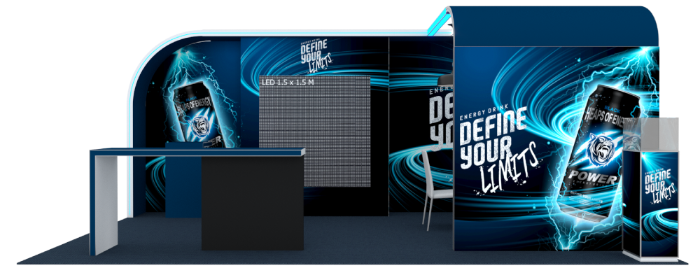 FlexFrame Booth 3×6 LED Exhibition บูธสำเร็จรูปดีไซน์หรู พร้อมระบบไฟ LED สำหรับงานแสดงสินค้าและสัมมนา